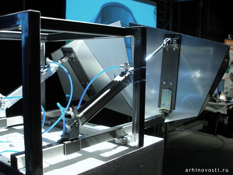Механизм системы кинетически проникаемых мембран (penetrable kinetic membrane) относительно прост – за счет перемещения отдельных модулей (с помощью пневматических цилиндров) можно получать различные изображения.