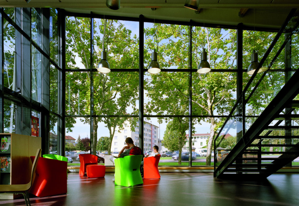 Библиотека и холл “Платформа Искусств” (‘Quai des Arts’ / ‘Platform of the Arts’), проект бюро Шабан и партнеры (CHABANNE & partenaires architectes), Румилли, Франция.