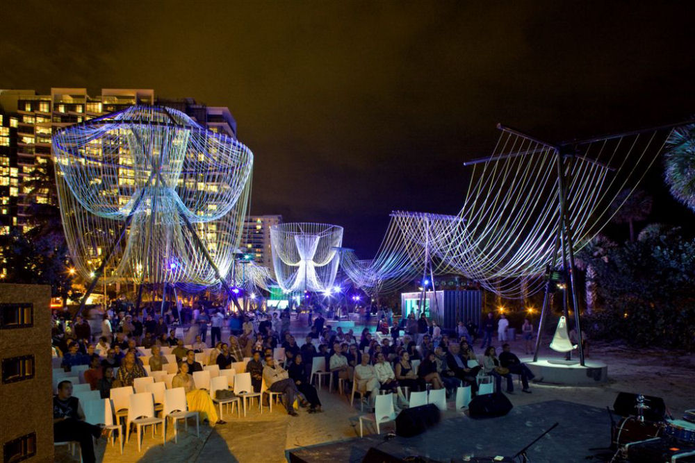 Световое шоу в рамках ярмарки Арт Бэйзел Майами Бич (Art Basel Miami Beach), проект Пью Хоанг Офис (Phu Hoang Office) и Рэйчли Ротем Студио (Rachely Rotem Studio), Майами, Америка.