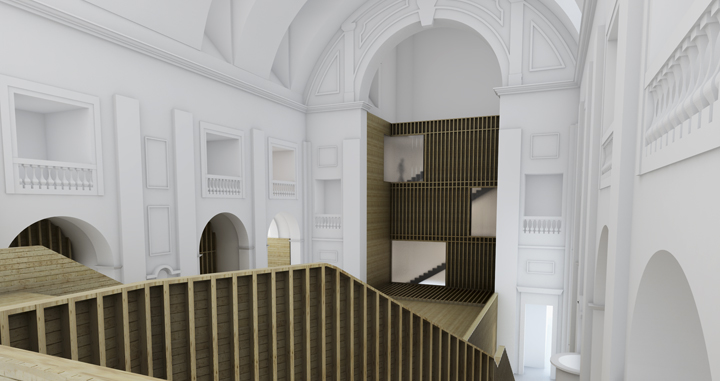 Выше: Переоборудование центрального офиса банка Португалии (Portugal Bank), Лиссабон, архитекторы Мануэль Сальдаго (Manuel Salgado), Карлос Круз (Carlos Cruz), Мадалена Дуарте Сильва (Madalena Duarte Silva) и Александр Бранко (Alexandre Branco).