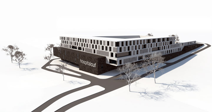Выше: Больница JMS в Оэйрас, общая площадь 43 332 м.кв., архитектор Йорге Эстрига (Jorge Estriga).