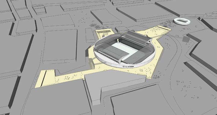 Выше: Стадион Panathinaikos Stadium, Афины, Греция, общая площадь 44 450 метров, архитекторы Мануэль Сальдаго (Manuel Salgado), Йорге Эстрига (Jorge Estriga), Карлос Круз (Carlos Cruz).