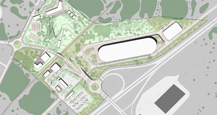 Выше: Бизнес-парк Pólo Norte, Матосинхос, планировщики Нуно Лоренцо (Nuno Lourenço), Педро Баррето (Pedro Barreto), Тьяго Фарина (Tiago Farinha), общая площадь 27 гектар.