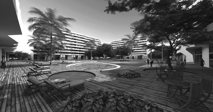 Выше: Жилой кондоминимум в Луанде (Talatona Residential Condominium), площадь 41 610 м.кв., архитекторы Томас Сальдаго (Tomás Salgado), Карлос Круз (Carlos Cruz) и Тьяго Фарина (Tiago Farinha), в стадии строительства.
