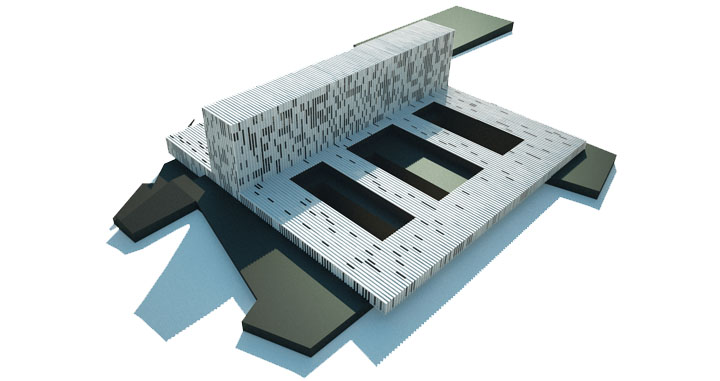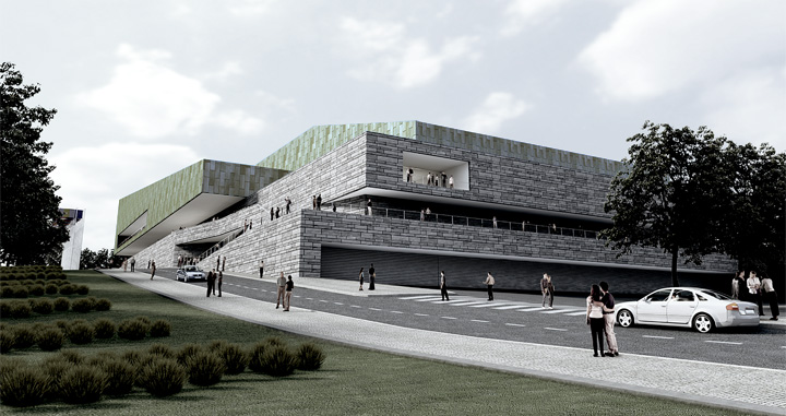 Выше: Многофункциональный павильон Фунчал (Funchal Multipurpose Pavilion), Мадейра, архитекторы Мануэль Сальдаго (Manuel Salgado), Йорге Эстрига (Jorge Estriga), Джон Альмейда (João Almeida), площадь 50 000 м.кв., стоимость проекта 36.297.000 €, в стадии строительства.