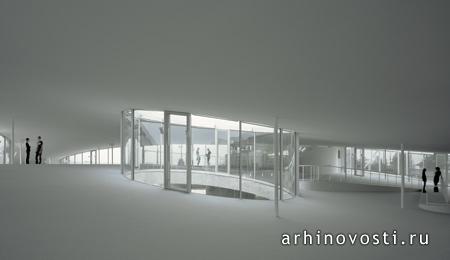 Выше: Университетский образовательный центр Ролекс (Rolex Learning Center), Швейцария, 2009, проект японского бюро САНАА (SANAA).