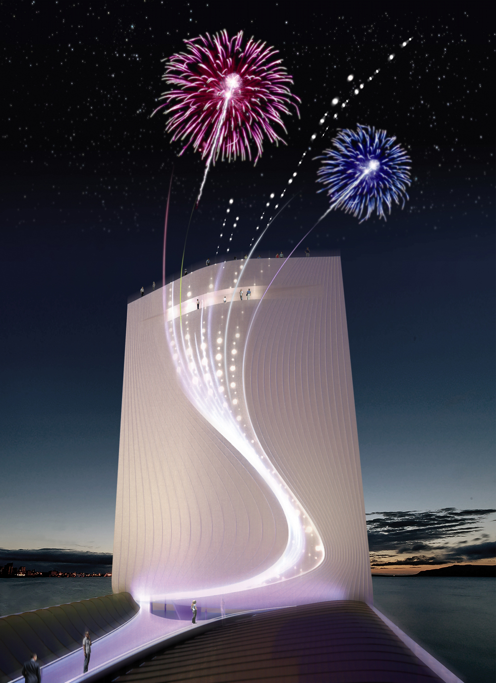 Башню можно будет использовать как городскую плазу и амфитеатр, на площадке, которая будет находиться на высоте 60 метров над уровнем моря, будут поводиться общественные встречи и собрания. На высоте 105 метров, со стороны Атлантического Океана, за водопадом, будет кафе и магазин; отсюда будет открываться потрясающий вид! На самой вершине будет оборудована смотровая площадка, а на уровне 90,5 будет площадка для банджи-джампинг, для искателей особо острых удовольствий, которых просто прекрасным видом уже не проймешь-)