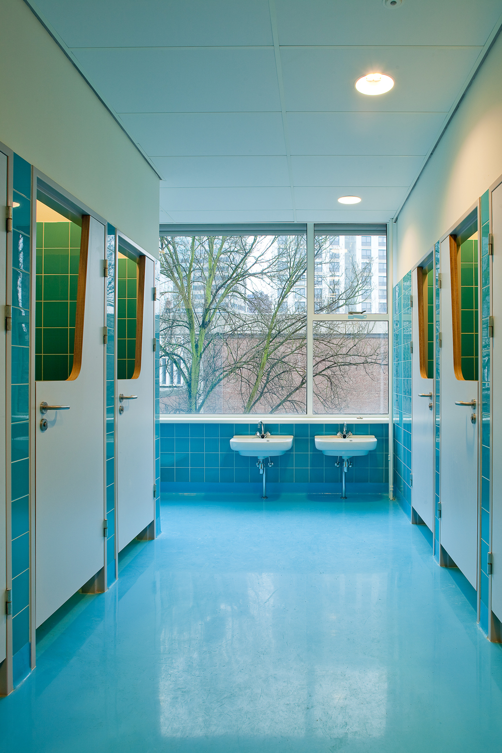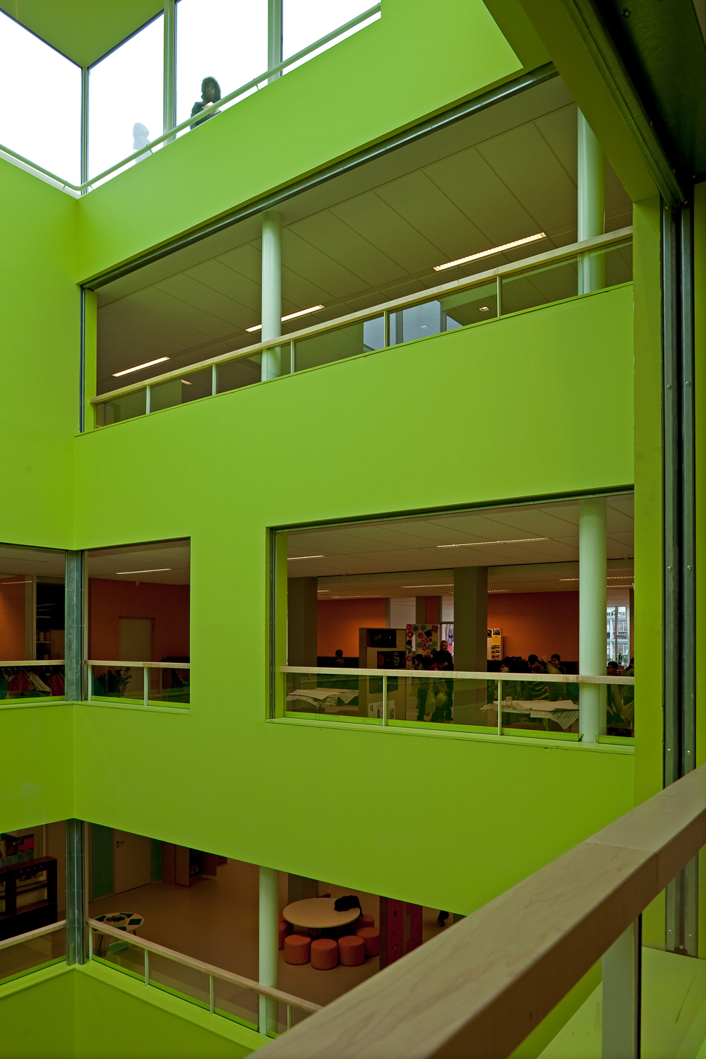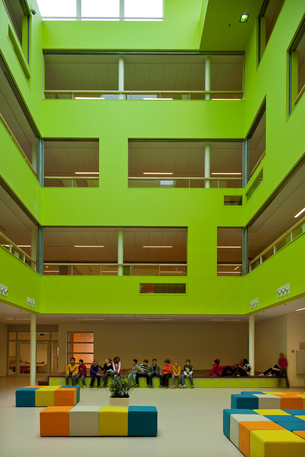 Между двумя школами Ян Принс и Виллиброрд (Jan Prins and Willibrord) не было сделано никаких физических разделений, они как бы случайно распределены по зданию. Цвета помогают для распознавания: синий для школы Виллиброрд (Willibrord), оранжевый школы Ян Принс (Jan Prins) и зеленый для общих мест. Благодаря такому цветовому решению школа выглядит ярко и красочно.