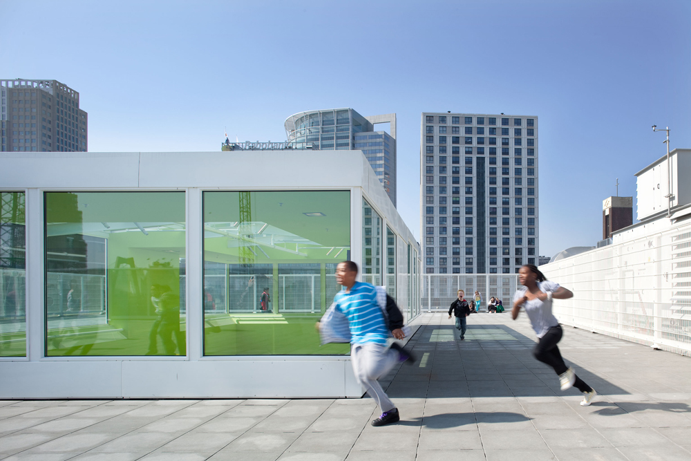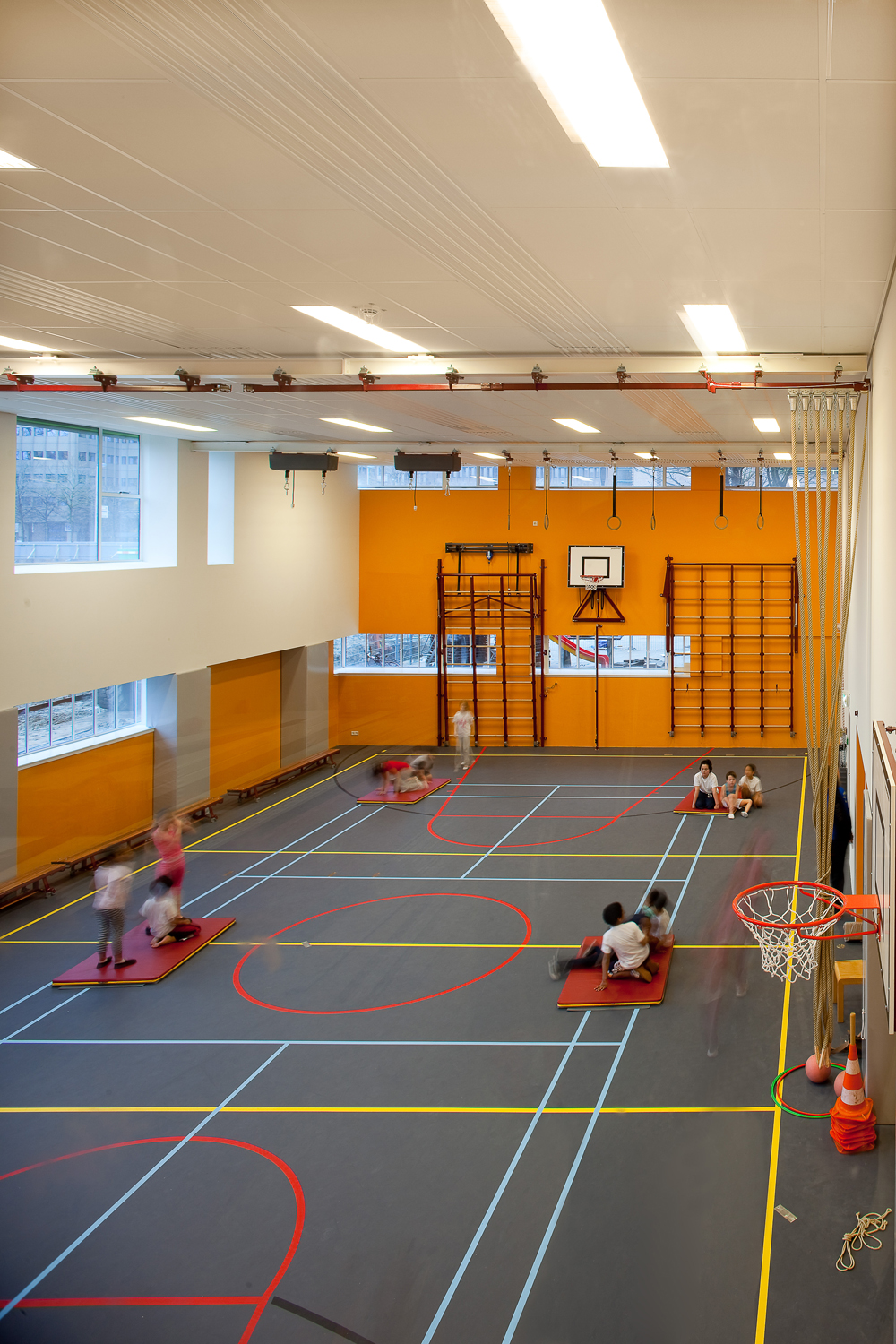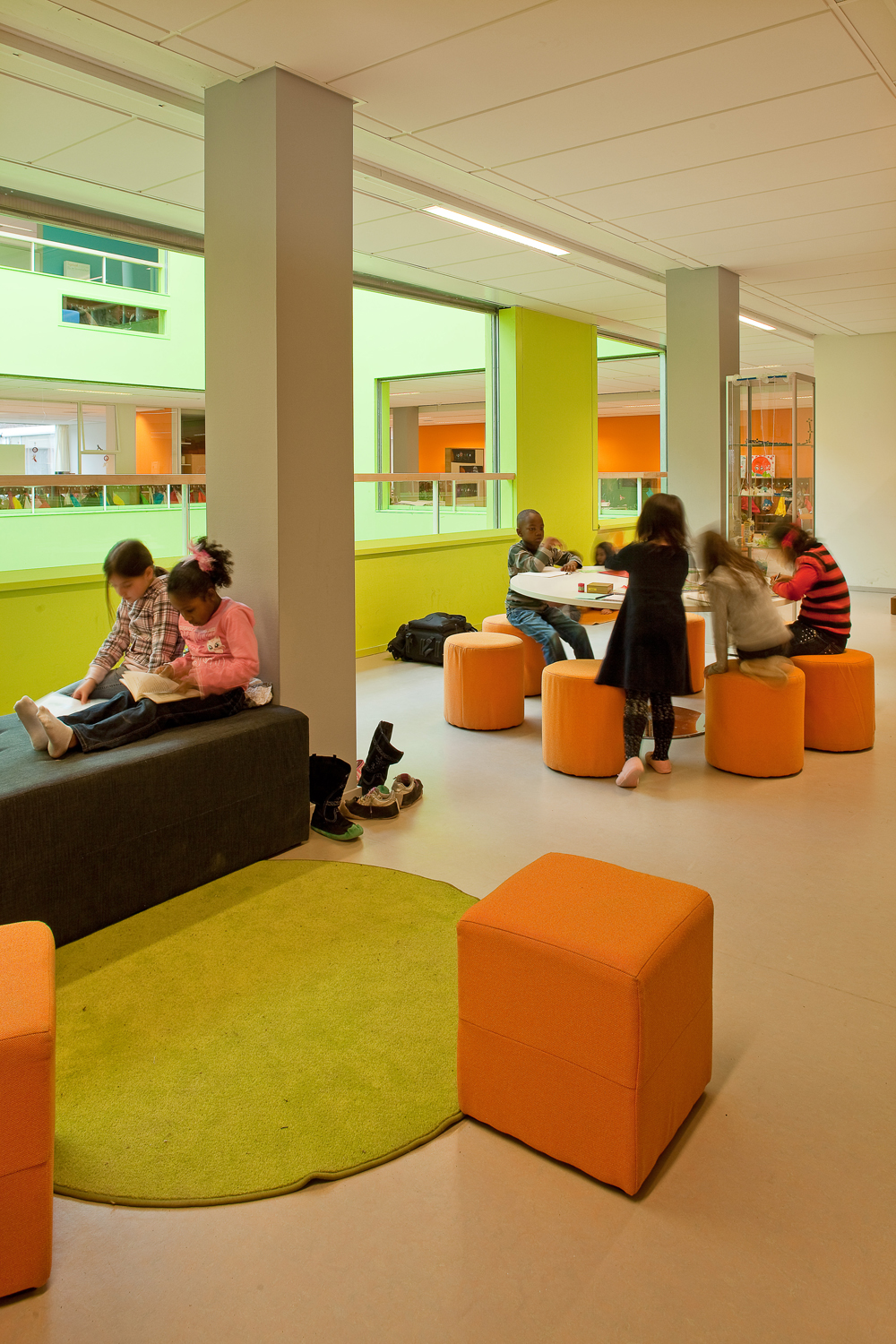Дизайн объединяет несколько учебных образовательных учреждений в одну большую семью. Разработанное голландским архитектором Крэйджвэнджером (Kraaijvanger) здание на улице Nieuwstraat в сердце Роттердама, было построено в 1970-ых, чтобы предоставить дом Социальной Академии. Для современных пользователей здание должно было преобразоваться в общественную школу, состоящую из двух начальных школ, двух дошкольных учреждений, двух спортивных залов и центра продленного дня.