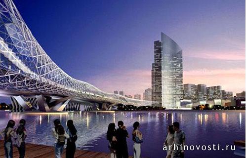 Открытие первого в мире двойного спирального пешеходного моста в Сингапуре. Сингапур.