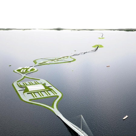 С одной стороны этой реки находится Гонконг с левосторонним движением, с другой – Китай, где принято делать это справа. В бюро НЛ Аркитектс (NL Architects) придумали толерантный мост, который примирит два берега: дороги накладываются одна на другую и дают волю каждой привычке.