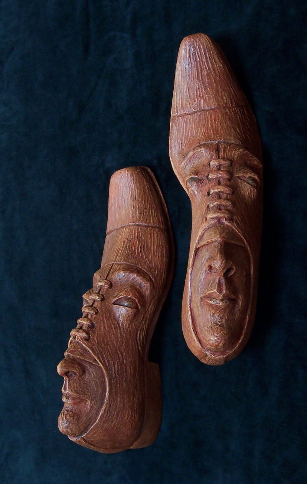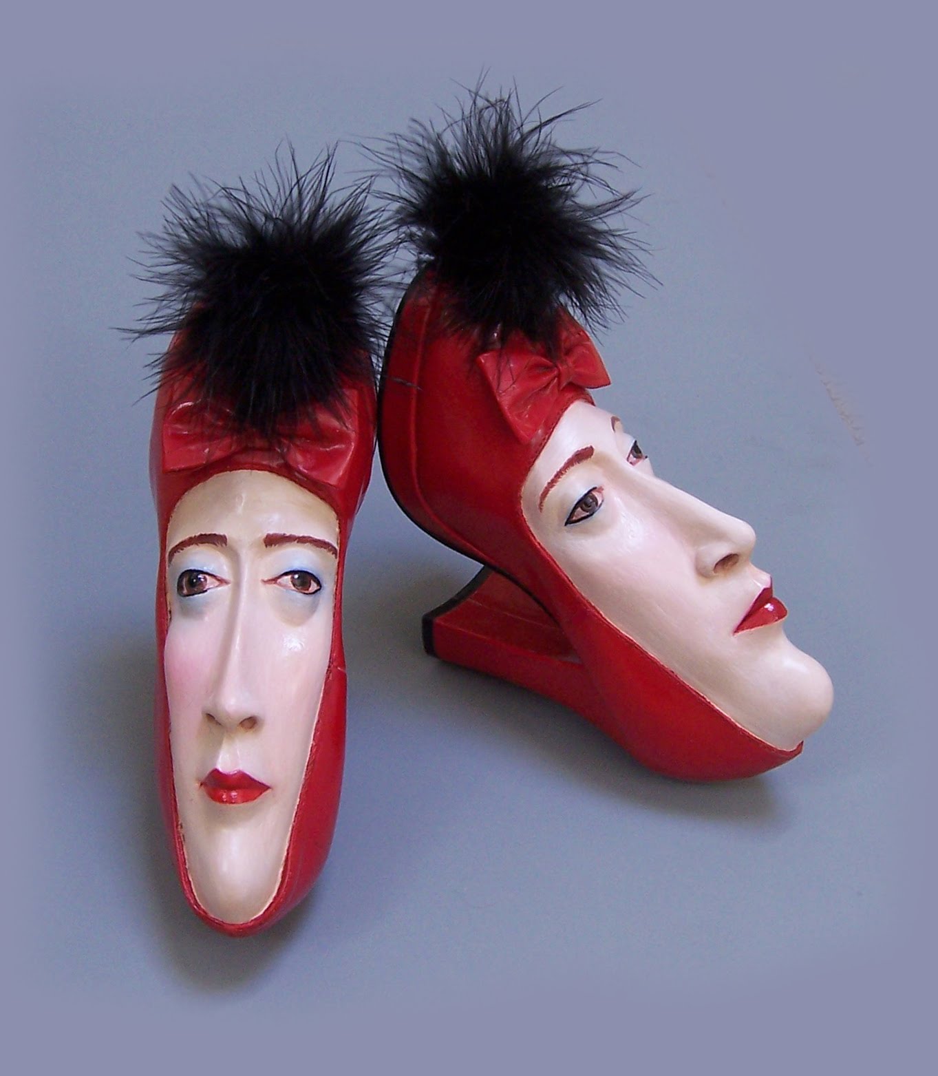 Когда Gwen была маленькой девочкой, она обнаружила, что каждая пара обуви имеет свой неповторимый характер. В зависимости от модели и изношенности, некоторые ботинки выглядели ворчливыми, некоторые сонными, а другие даже пели. Молодая Gwen воспринимала их как живые существа. Теперь она собирает обувь и дает им свое лицо. В этом ей помогают глина и акриловые краски.