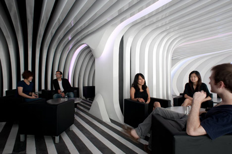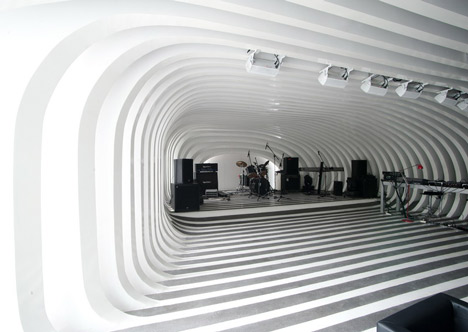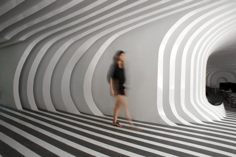 Архитектура, музыка и стиль объединились в зигзагообразном Зебаре (Zebar). Шанхай, Китай.