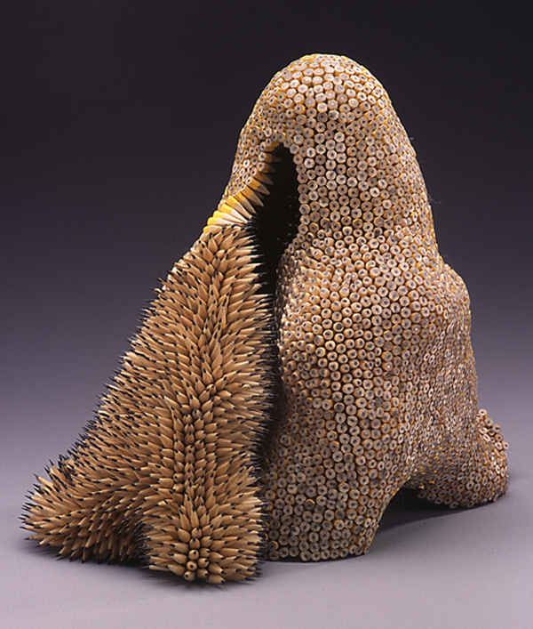 Чтобы создать скульптуру Дженнифер  разрезает каждый карандаш вдоль на несколько одинаковых по длине частей, затем просверливает сквозную дыру, так что они становятся похожи на бусины, затачивает их и сшивает вместе. Процесс достаточно прост. Но вот результат, несомненно, удивит даже самого предвзятого критика.