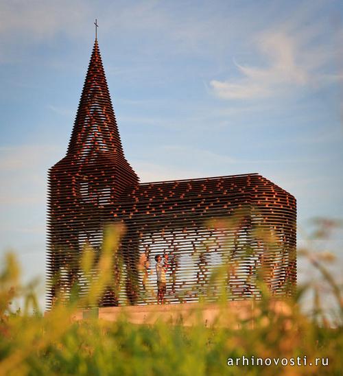 10-метровая церковь состоит из 100 рядов, созданных при помощи 2000 стальных элементов.