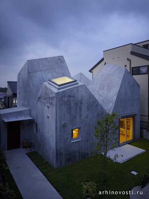 Япония продолжает удивлять своими необычными жилыми коттеджами. Этот дом появился в Токио, благодаря архитектурной компании TORAFU ARCHITECTS. Не просто сразу ответить на вопрос, есть ли у строения крыша. Может это просто продолжение стен? Одно можно сказать точно – коттедж действительно смотрится необычно на фоне привычных соседних домов.