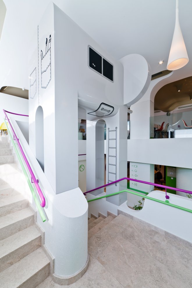 Особое внимание было уделено дизайну лестницы, которая закручивается вокруг слона и ведёт на второй этаж.