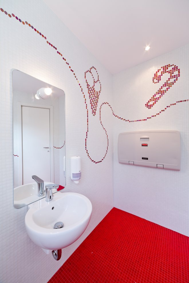 Ресторан у нас в России это питийное заведение, туда с детьми не ходят. Тем более в ресторан ходят поздно вечером когда дети должны уже спать. Во всех ресторанах вечерняя музыкальная программа начинается посе 20 ч. Детям там практически делать нечего. После ресторана обычно не все приходят домой на своем ходу (бывало и на бровях). Здесь явно детская архитектура которая вряд ли привлечет взрослых… Соски на потолке вообще смешно выглядят..