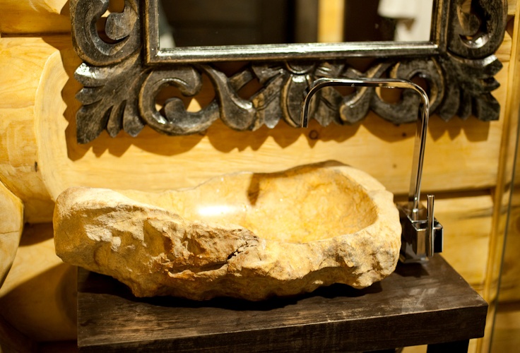 (Тик – редкая порода дерева, произрастающего в некоторых регионах Азии. Тик обладает большой прочностью и феноменальной устойчивостью к воздействию влаги, благодаря чему широко используется в создании яхт премиум класса). Все осветительные приборы (люстры, светильники, бра) выполнены в этническом Индонезийском стиле Балийскими мастерами плетения ротанга. В качестве раковин используются срезы необработанного камня.