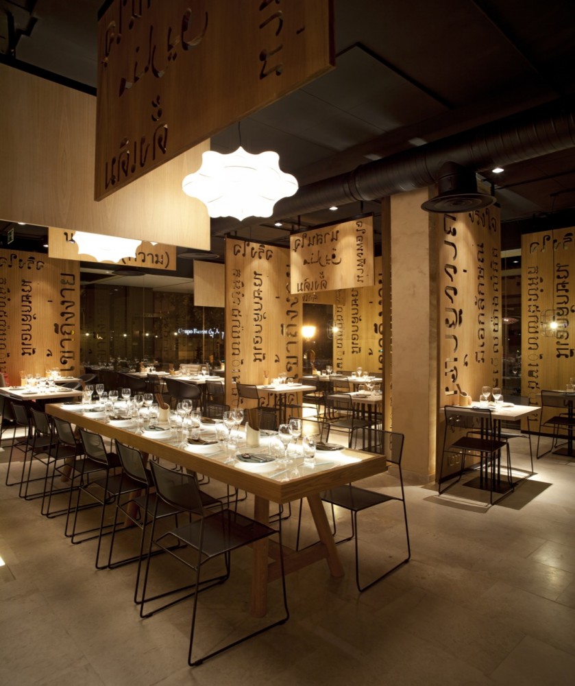Как передать в интерьере атмосферу юго-восточной Азии не ударившись в традиционные китайские или японские мотивы? На этот вопрос дали ответ сотрудники компании IlmioDesign, занимаясь разработкой дизайна для ресторана LAH!, расположенного в Мадриде, Испания. Как оказалось, про этот удивительный континент можно сказать ещё очень и очень много.
