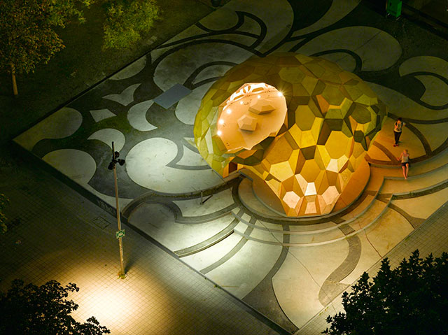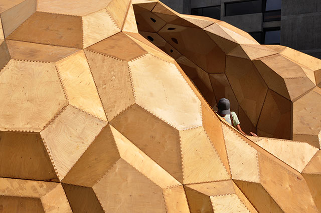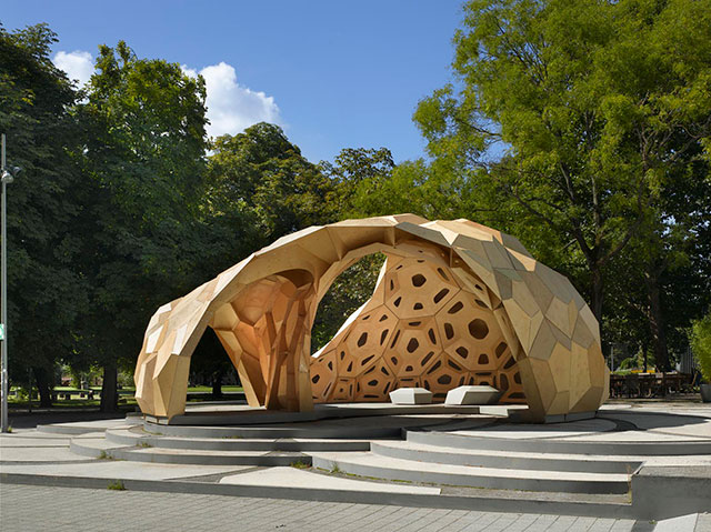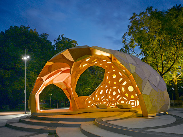 Соединённые друг с другом многоугольные деревянные пластины образуют этот павильон, похожий на панцирь морского ежа. Павильон был сконструирован в рамках биологического исследования, которое совместно проводили Института вычислительного проектирования (ICD) и Институт строительства и структурного проектирования (ITKE). Оба исследовательских института функционируют в Германии в рамках Университета Штутгарта.