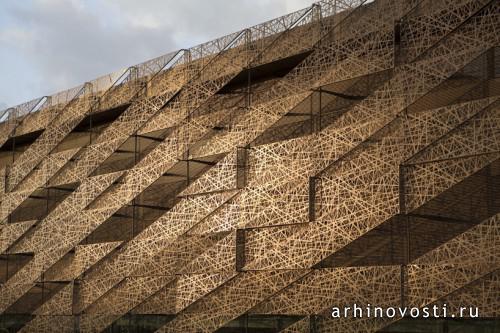 Сетка не только помогает предотвратить перегрев помещений, но и становится отличным декоративным элементом фасада.