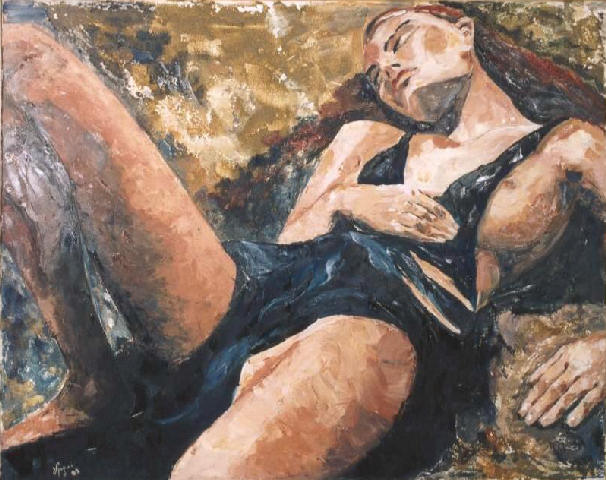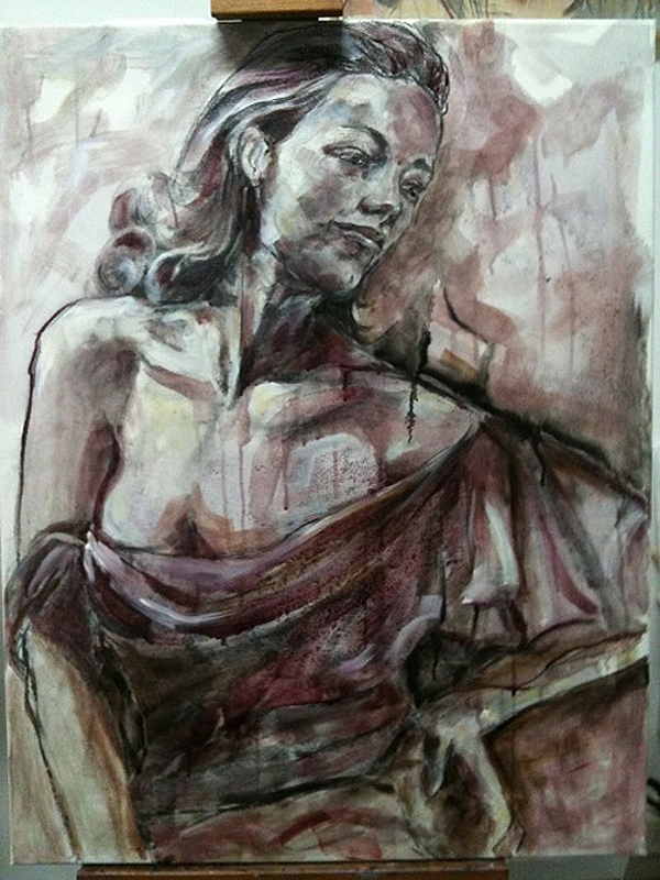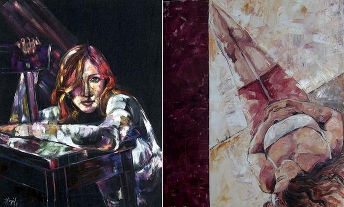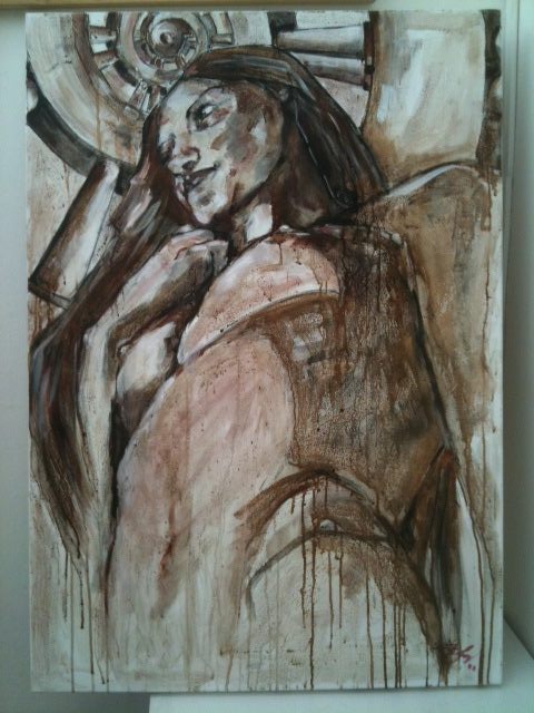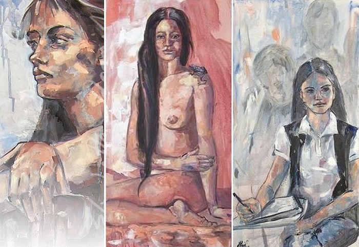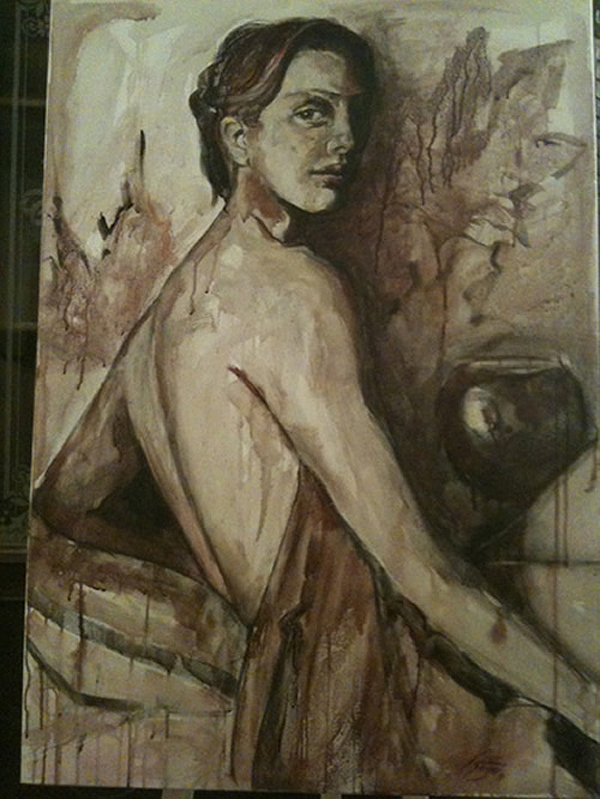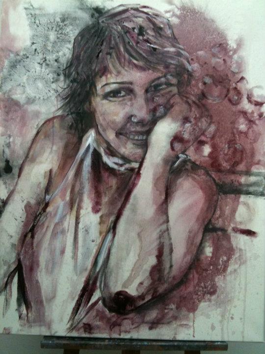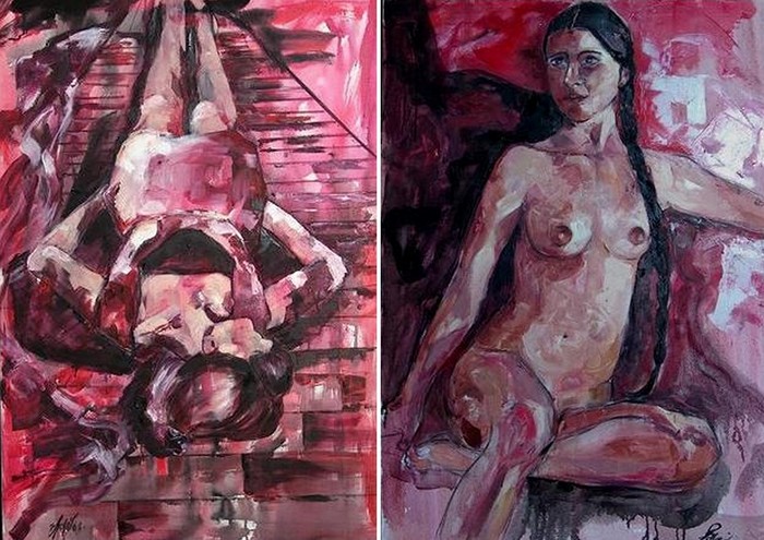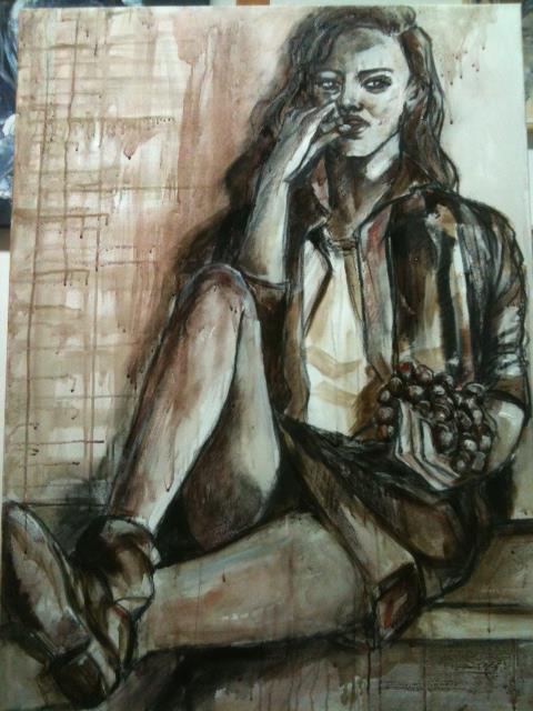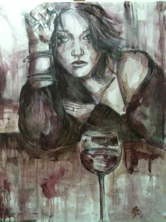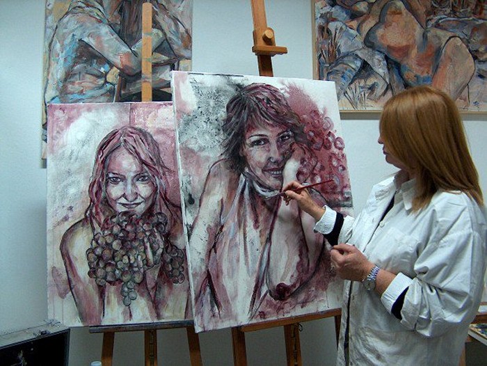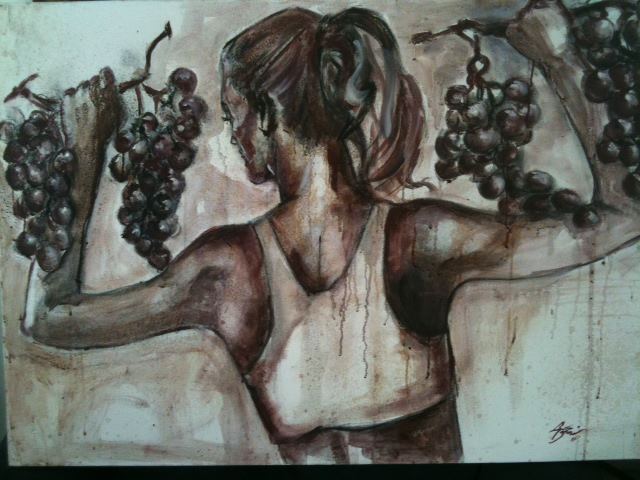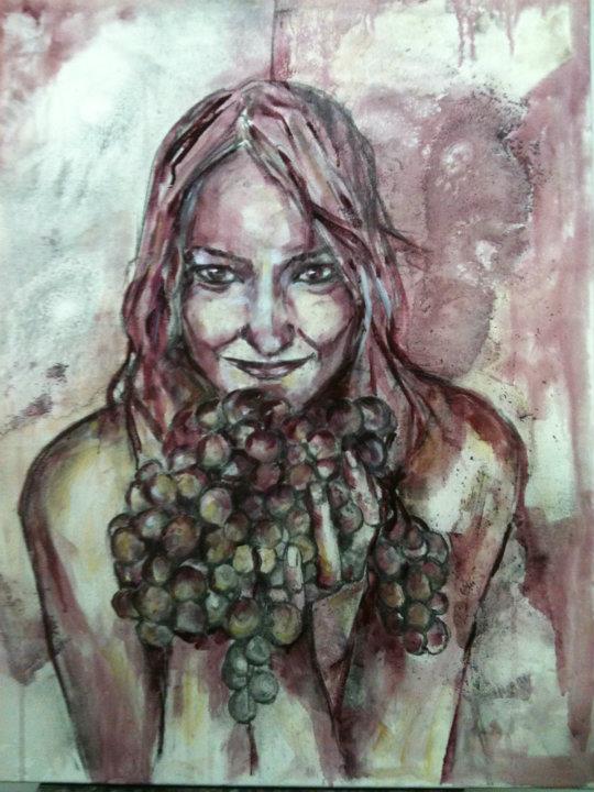 Девушка с персиками, пардон, с гранатами похожа на Лолиту Милявскую. По моему зря художник зациклился на вине. Можно писать нормальными красками, в живописи важно впечатления, эмоции, а способ как художник достигает данного впечатления не имеет значения. Иной художник одной линией может изобразить больше, чем кто-то используя всю палитру. Талант всегда виден и никто не спрашивает из чего и чем картины написаны. Кто не имеет таланта, но трудолюбив ищет неординарные способы живописи вином или кровью…