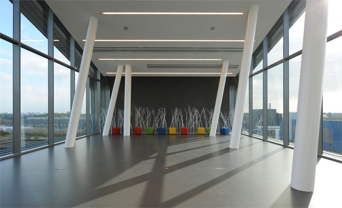 Благодаря появлению пристройки, здание приобрело абсолютно новый, притягательный внешний вид, который ляжет в основу фирменного стиля компании Umicore.