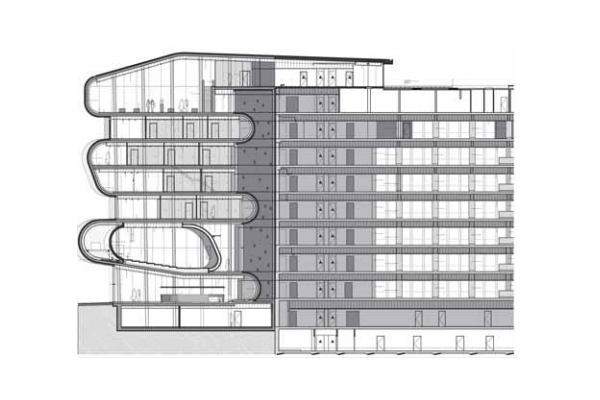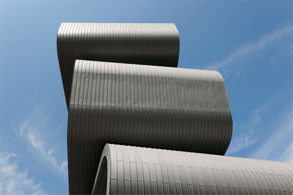Гигантская лента из цинковых панелей плавно изгибается между этажами новой офисной пристройки, спроектированной специалистами из бельгийской фирмы Conix Architects, для компании Umicore, специализирующейся на переработке металла. Здание находится в городе Антверпен, Бельгия.