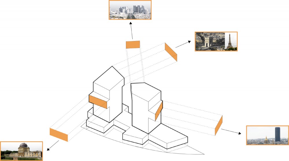 С верхних этажей открывается прекрасный вид на медонские холмы с одной стороны и на городскую застройку Парижа с другой.