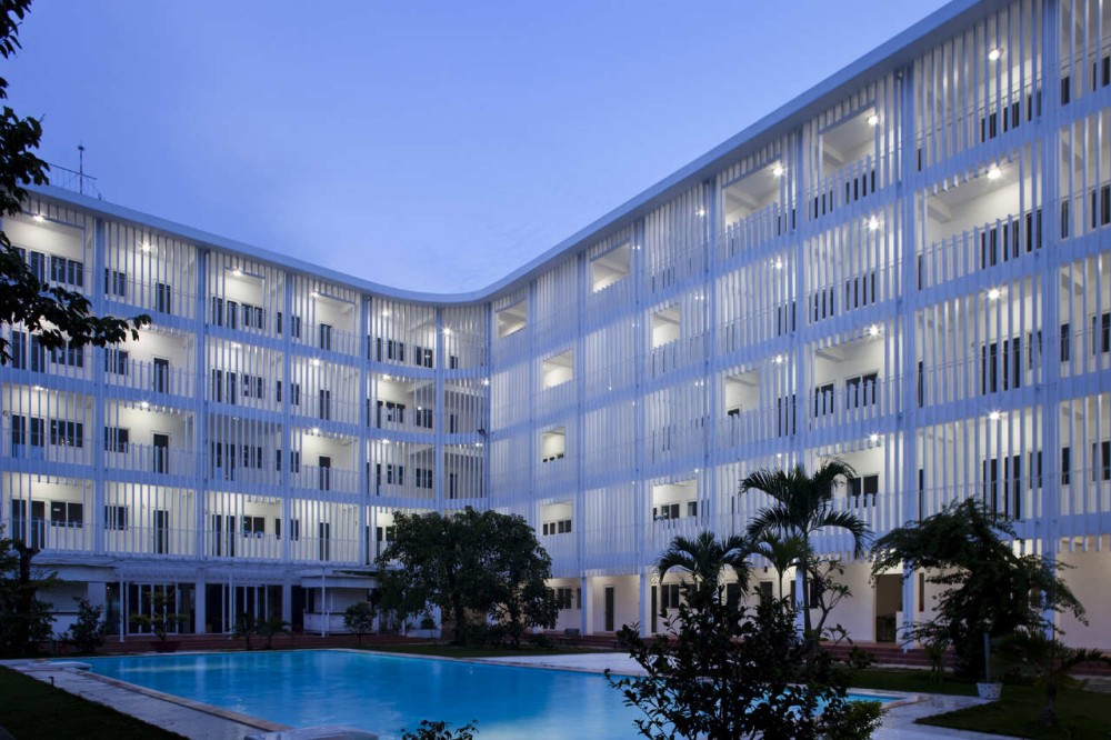 Окна здесь большие, а т.к. среднегодовая температура составляет 22-27 градусов, но большая площадь стен спасает и от палящего солнца.