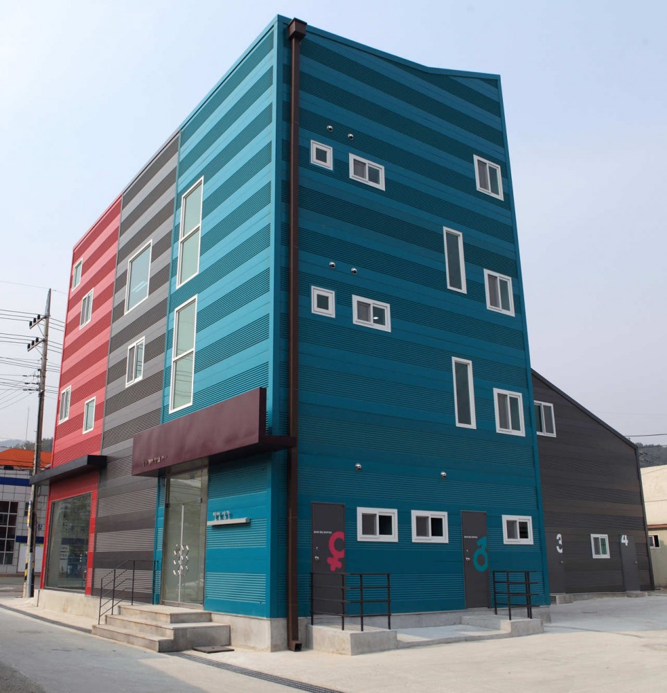 В качестве основного строительного материала была выбрана сталь, которая использовалась в возведении большинства зданий вокруг. Она часто используется для строительства недорогих проектов в Корее.