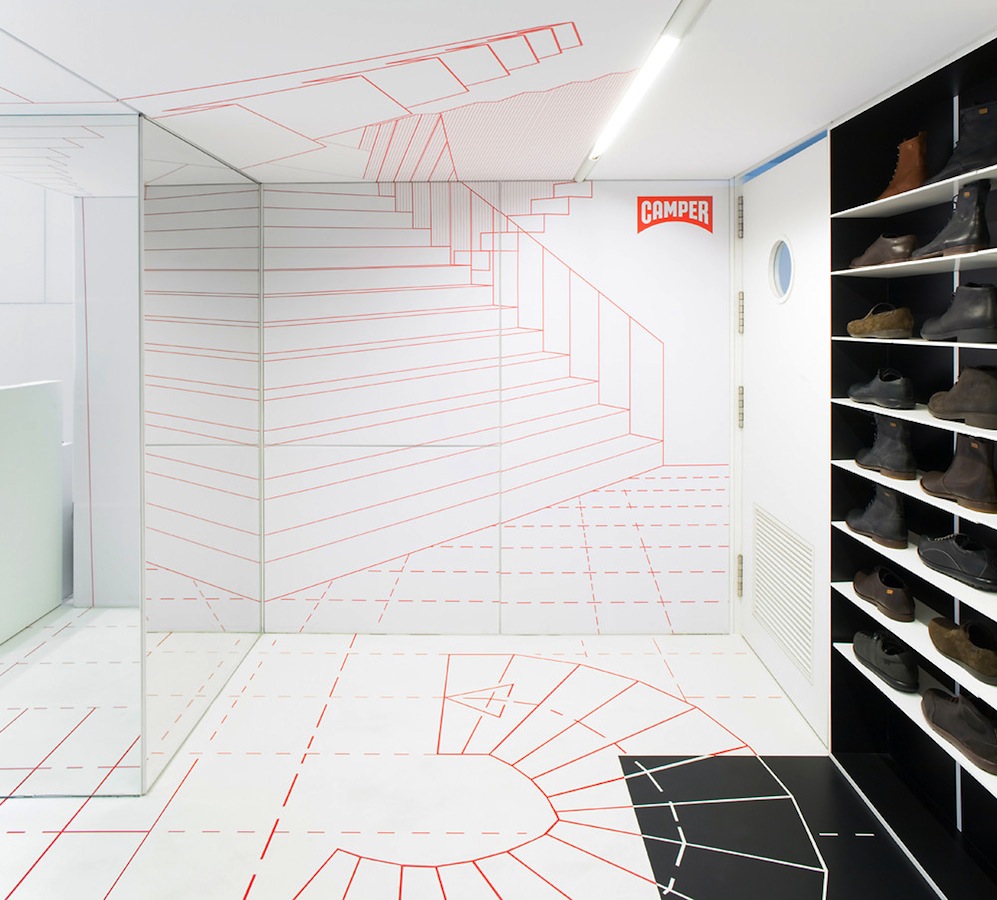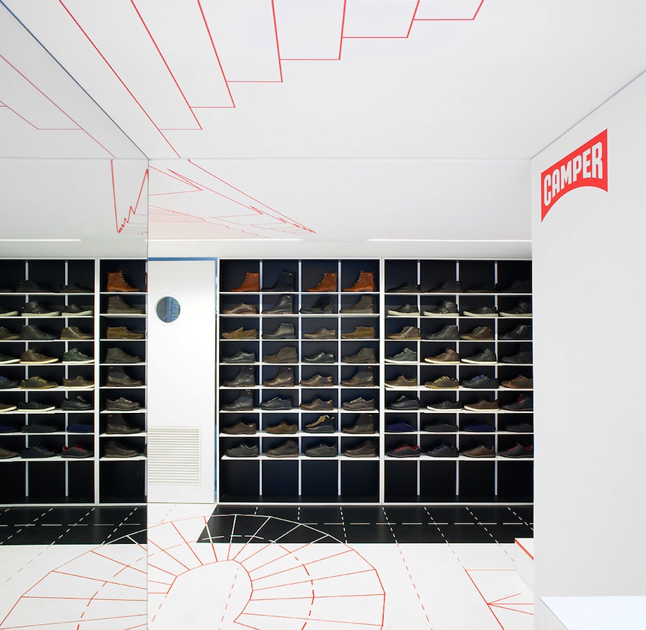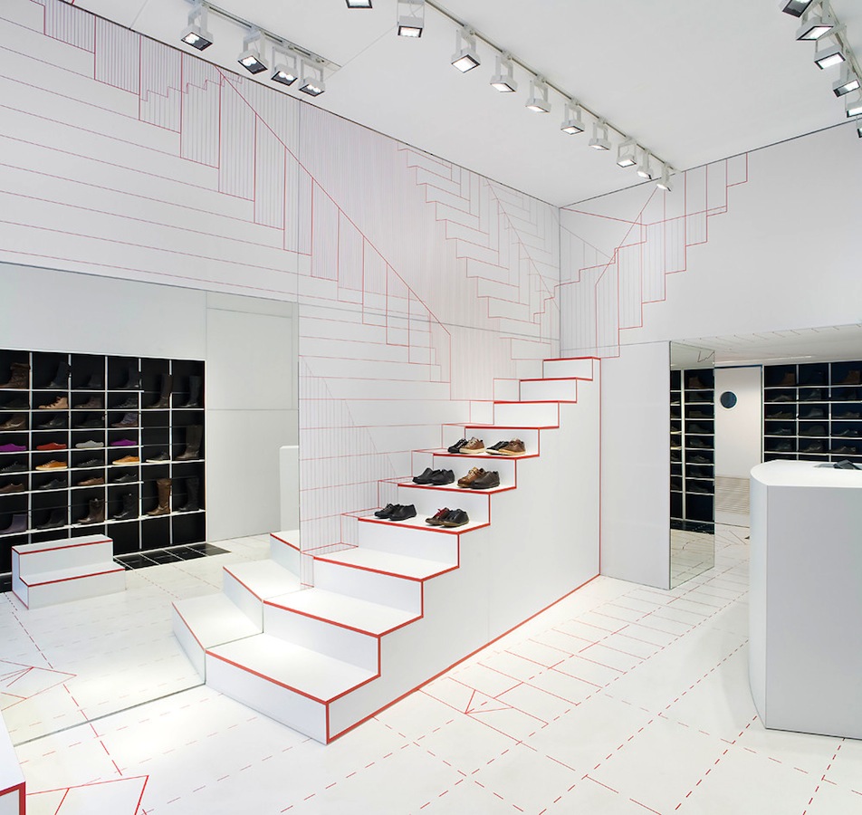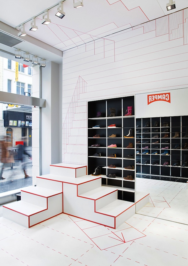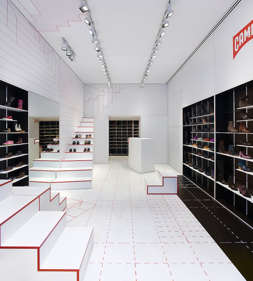 Интерьер магазина обуви Camper от Studio Makkink & Bey. Лион, Франция.