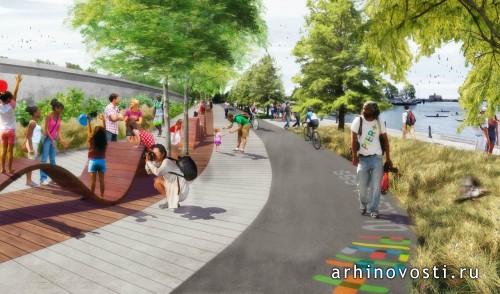 East End Park подарит посетителям удивительный по красоте вид на озеро. Одна часть этой зоны пирса поднимается высоко над водой, а другая, наоборот спускается к ней. Под углом, который поднят, откроется кафе или ресторан. Сидя на ступеньках-скамьях, вы сможете наблюдать за зрелищным водным шоу, разработанным студией WET design.