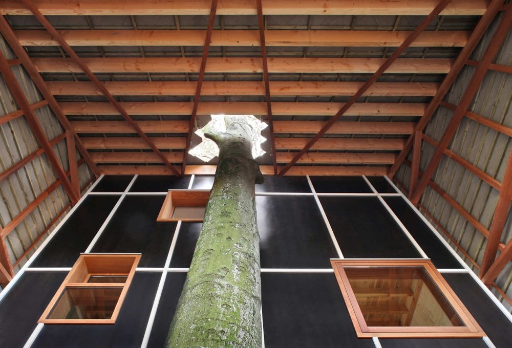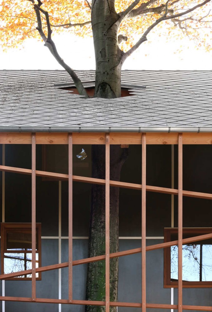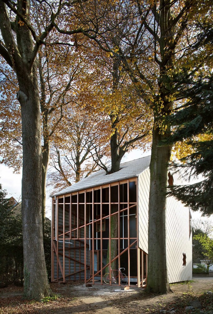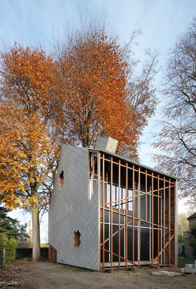 Этот жилой дом явно маскируется под дерево. И у него неплохо получается. Ещё бы, ведь внутри него растёт самое настоящее дерево. Присмотритесь внимательней – оно из крыши торчит. Обладая маленьким бюджетом и ещё меньшей площадью для постройки, архитекторы из студии Architecten De Vylder Vinck Taillieu мастерски вышли из положения, спроектировав такой дом. А находится он Бельгии.