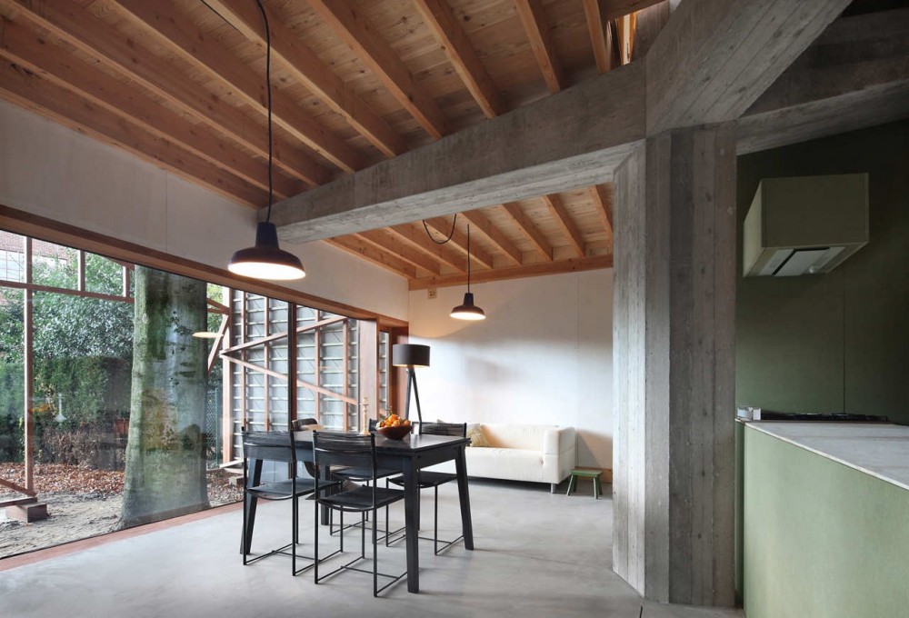 В комнатах было решено оставить минимальное количество мебели и много деревянных необработанных поверхностей. Внутри здания образовалась очень светлая и домашняя атмосфера.