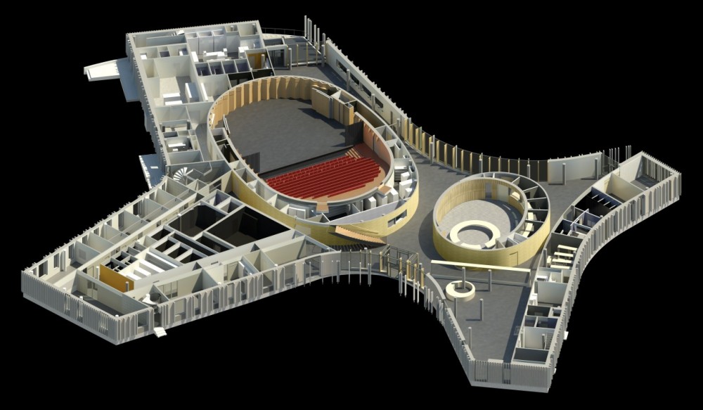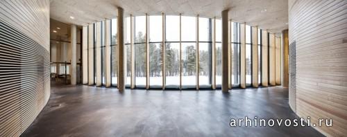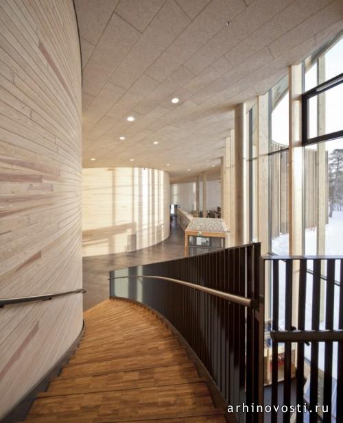 Форма строения была тщательно продумана, чтобы сохранить растущие на площадке деревья, ведь в данных широтах они растут очень медленно.
