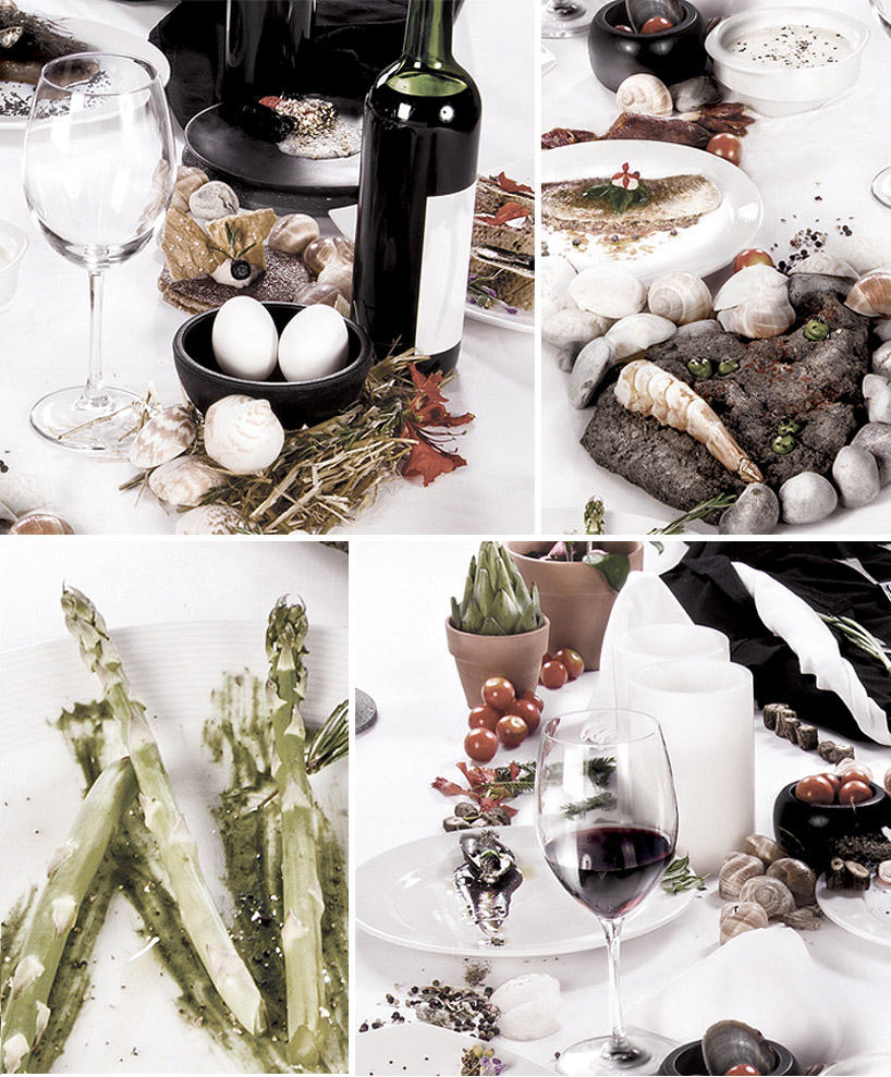 Специалисты из студии Golpeavisa тщательно расставили-разложили бокалы, ракушки, камушки, тарелки со спаржей и другими продуктами, благодаря чему под определённым углом можно увидеть лицо.
