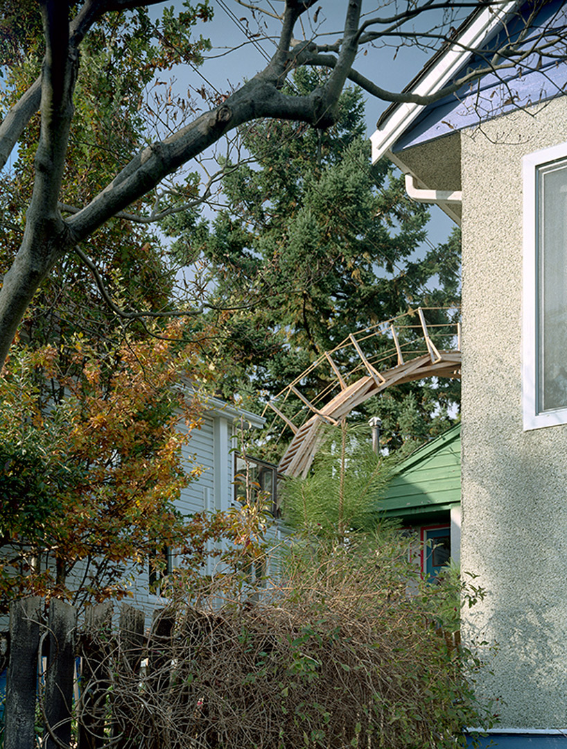 Два дома в мультфильме были соединены хрустальным мостом в форме дуги. Примерно то же самое сделал Рис в одном из жилых районов Ванкувера, Канада, только мост был изготовлен из дерева.