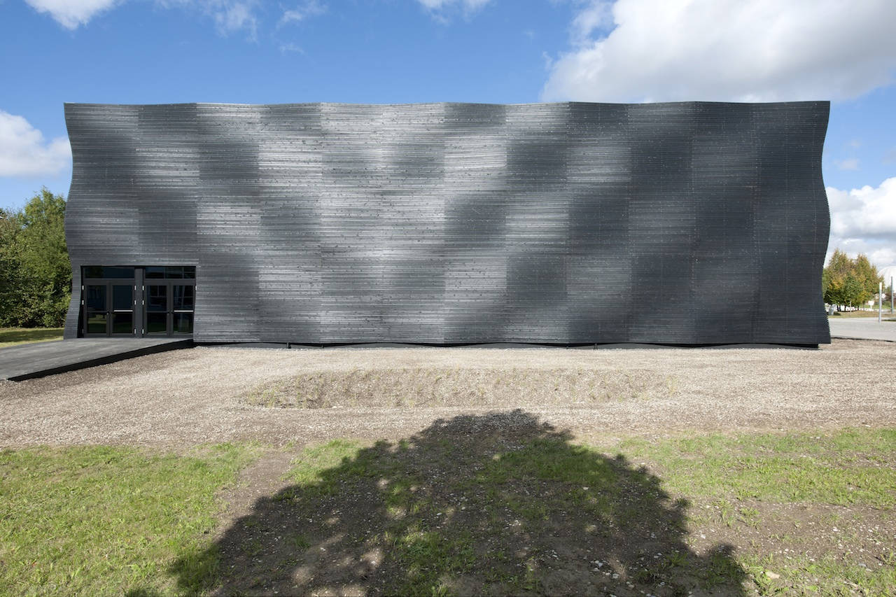 Доски были расположены так, что стены здания имеют волнистый рельеф.