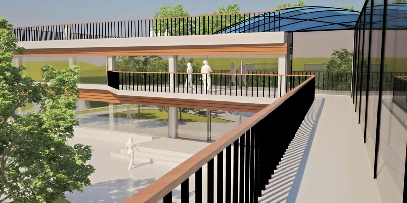 Все надземные и подземные конструкции оснащены лифтовыми вертикальными коммуникациями, так же все входные группы оснащены пандусами. Внешние вертикальные коммуникации оснащены открытыми подъемниками для свободного перемещения инвалидов по территории парковой зоны, а так же от блока к блоку.