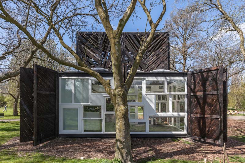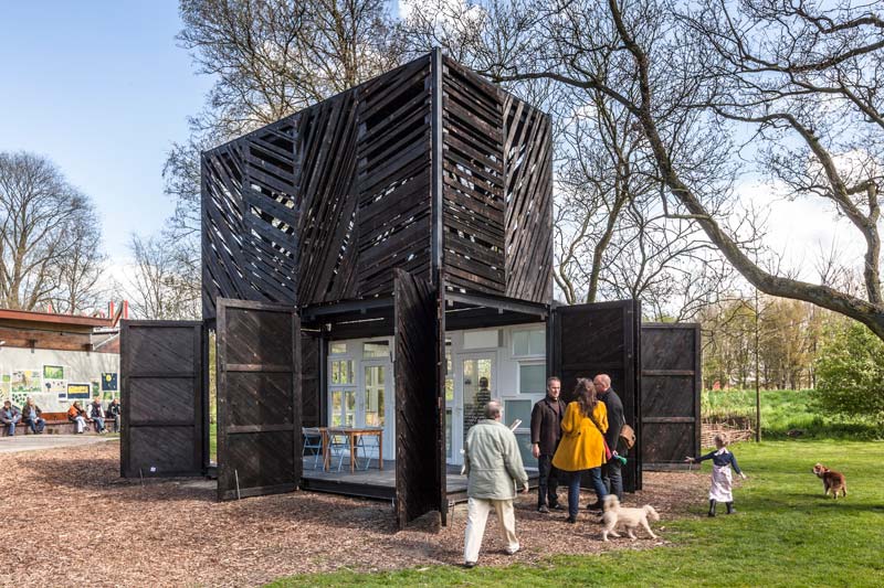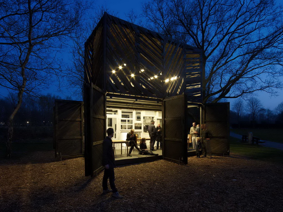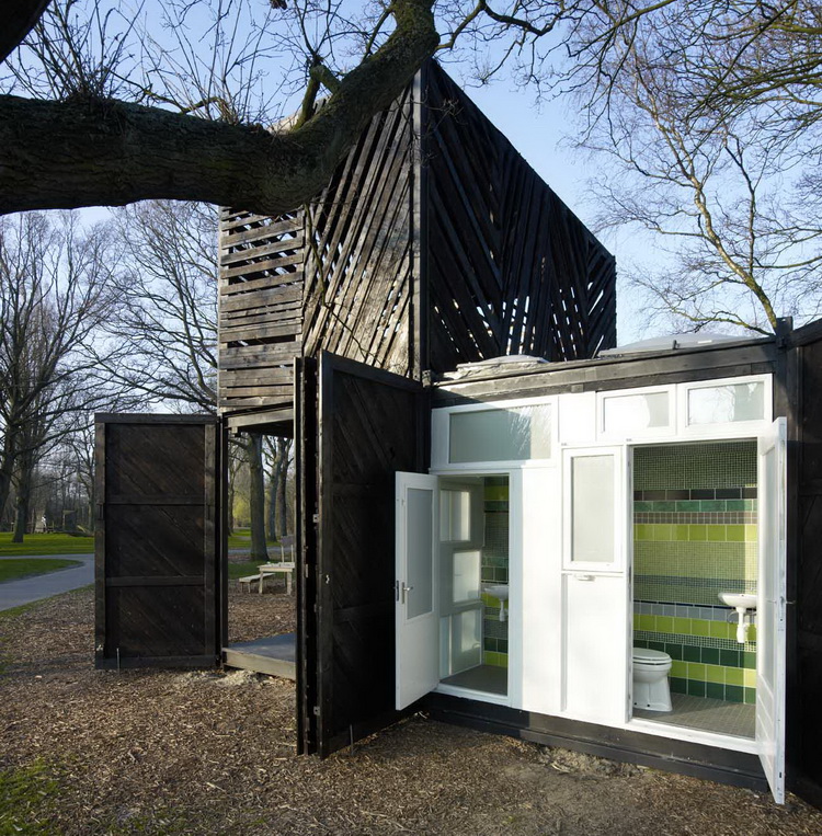 Архитектурные компании bureau SLA и Overtreders W реализовали занимательный проект в Амстердаме, Нидерланды. В результате их совместной работы в городе появилось уникальное небольшое кафе Noorderparkbar. Все материалы для его строительства ранее где-то использовались и были куплены у около 100 разных продавцов с сайта marktplaats.nl (голландский аналог eBay).