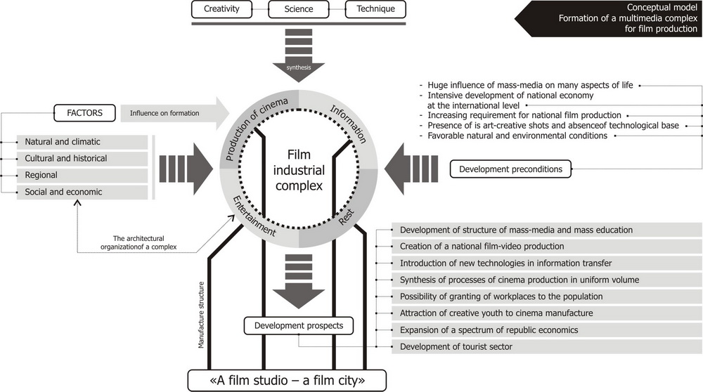 Кинопроизводственный комплекс представляет собой некий синтез творческой, научной и технической работ, напрямую связанных между собой и имеющих единую цель – создание и выпуск готовой кинопродукции, а также подача полезной, по возможности последней, информации и внедрение новых цифровых технологий.