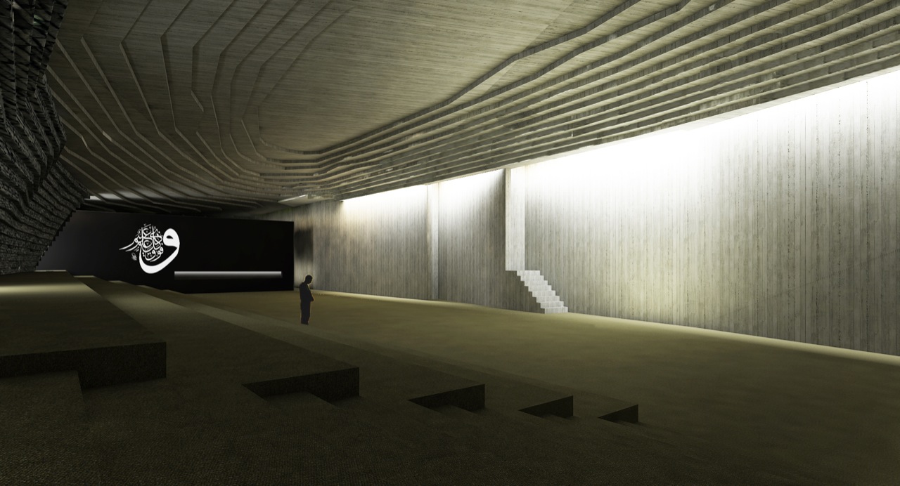 Внутреннее пространство мечети напоминает пещеру. По мнению архитекторов, это должно вызывать у прихожан волнительные и трепетные чувства и настраивать на искренние молитвы.
