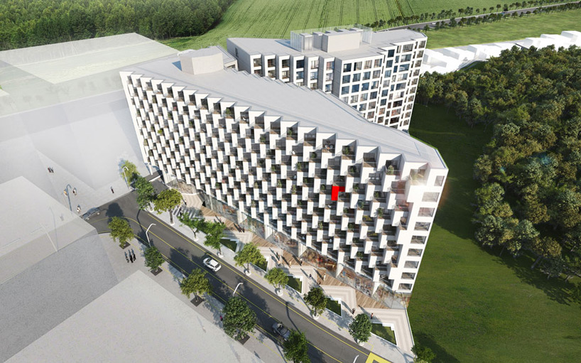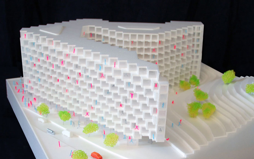 Зигзагообразные фасады здания позволили расположить жилые помещения так, чтобы ни у одного из них окна не выходили на окна соседей.