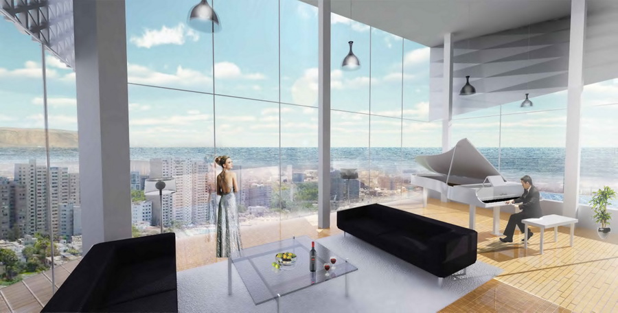 Между прочим, увидеть из окон и с балконов-террас можно не только городскую застройку, но и близлежащий парк, площадку для гольфа и, конечно же, самое настоящее море.