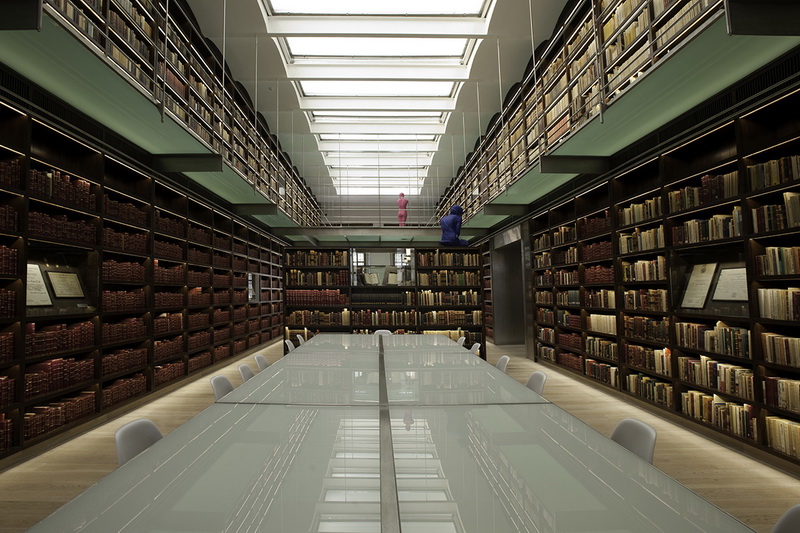Точно так же, как и в доме дипломата, бесконечные ряды книг в библиотеке занимают полки от пола до потолка.