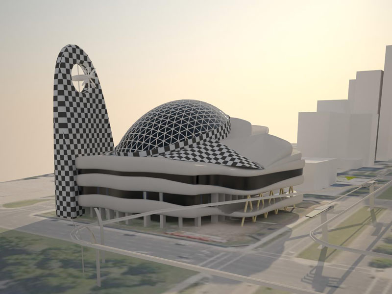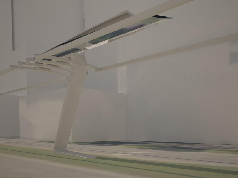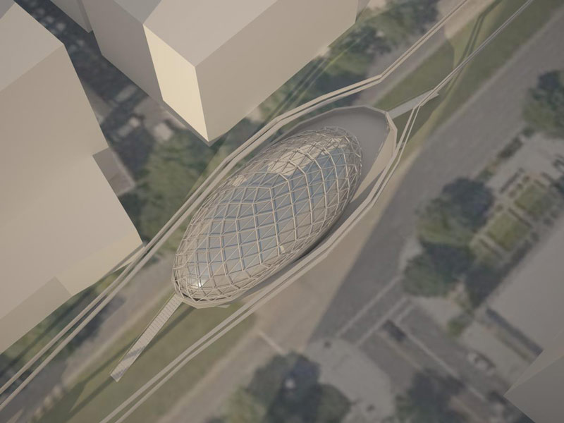 Concept “Zeitgeist” have modern forms and new technologies. Solar batteries and wind-powered generator which give energy to monorail railway and for the shopping centre.