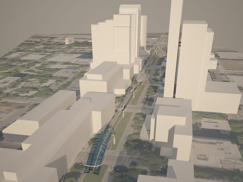 Конкурсная работа Тополева Вадима. Монорельсовая железная дорога «Дух времени». Сакраменто, США.