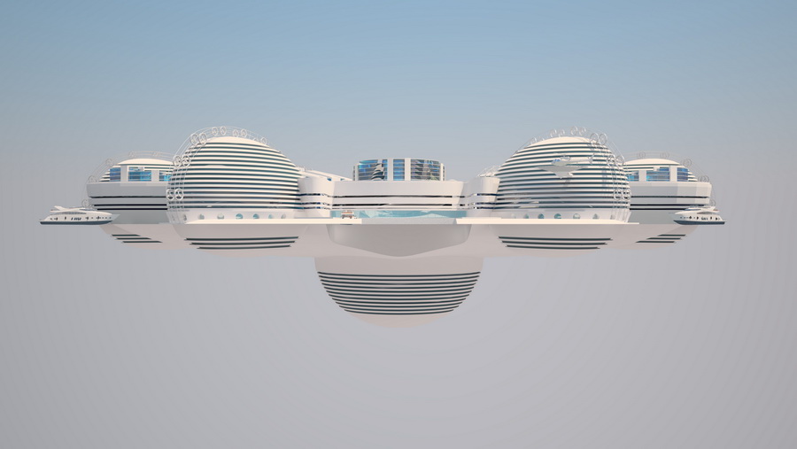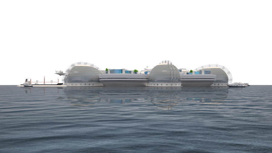 На этих ландшафтных кораблях есть все необходимое для полноценной жизни. Плавучие острова выглядят чрезвычайно естественно, ведь они прекрасно вписываются в окружающий пейзаж. Они могут быть пришвартованы к суше или свободно плавать в открытом океане. Мобильность таких городов позволяет перемещать их в те районы, где возникает угроза наводнения. Разумеется, остров, задуманный как противоядие от непрерывного отравления окружающей среды, и сам должен быть безупречен с экологической точки зрения. И действительно, задуманная на нём организация жизни может служить образцом бережного отношения к природе. Во-первых, всю хозяйственно-бытовую деятельность города будут поддерживать устройства, использующие исключительно природные источники энергии: ветряки, солнечные панели и т. д. Во-вторых, питания населения планируется осуществлять за счет внутренних ресурсов, без импорта продуктов извне. Для этой цели предполагается повсюду разбить фруктовые сады и огороды, а в подводной части острова устроить рыбную ферму. Планировочное решение жилищной структуры происходит из принципа построения городов: есть ядро-центр, и примыкающие к нему части. В этом проекте есть ядро, вокруг которого формируется структура. Художественным образом для создания жилой структуры послужила морская тематика, бионическая форма: кувшинки, медуза. По прогнозам аналитиков, к 2050 году население нашей планеты достигнет 12 миллиардов человек. Города будут разрастаться, превращаясь в густонаселенные мегаполисы, и обычных домов станет недостаточно. Выходом из этой ситуации может стать освоение водного пространства – создание плавучих островов.